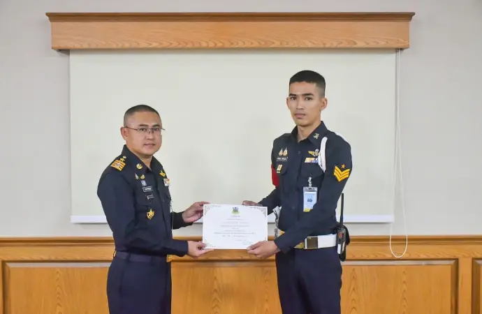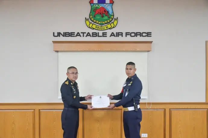เป็นประธานในพิธีมอบใบประกาศเกียรติคุณให้แก่กำลังพล ซึ่งปฏิบัติหน้าที่ ช่วยเหลือผู้ประสบอุบัติเหตุรถจักรยานยนต์เสียหลักพุงชนเสาไฟฟ้าบริเวณหน้า กองบิน 2
