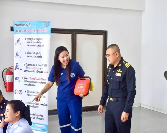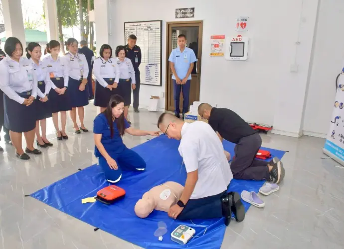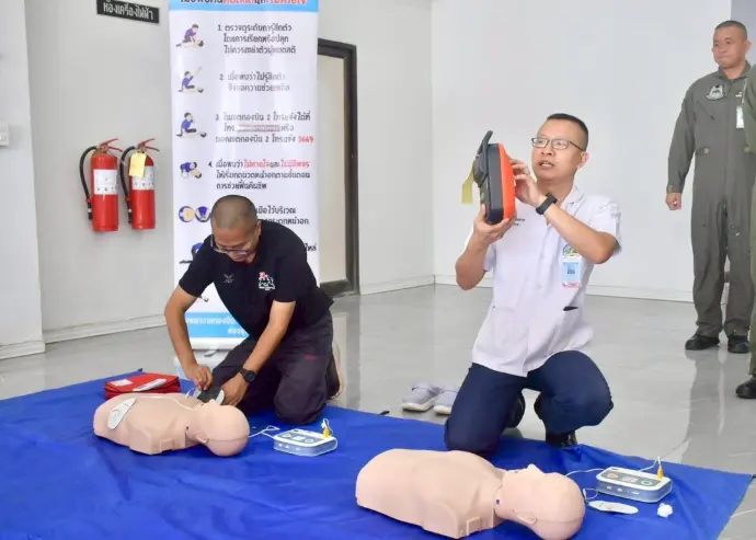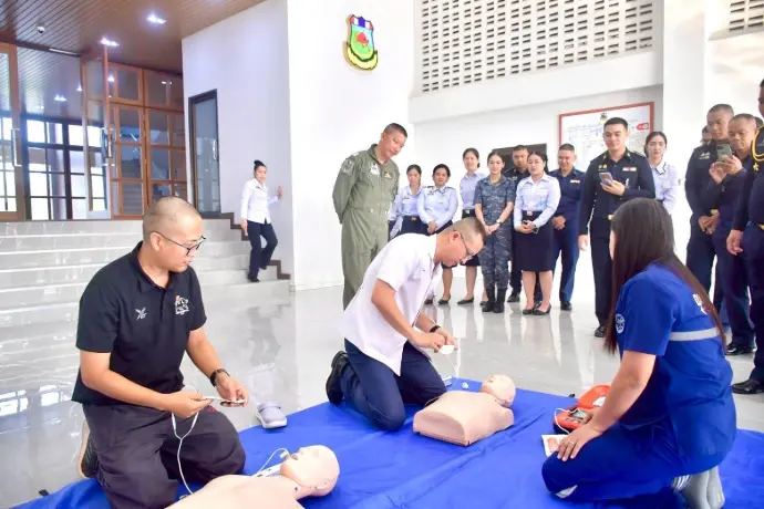 เป็นวิทยากรบรรยาย สาธิตการใช้เครื่องกระตุกหัวใจด้วยไฟฟ้าแบบอัตโนมัติ (AED) ให้แก่ข้าราชการ ลูกจ้าง พนักงานราชการ กองบิน 2