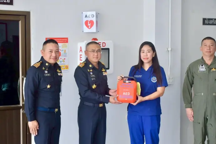 ผู้บังคับการกองบิน 2 มอบอุปกรณ์การแพทย์ เครื่องกระตุกหัวใจด้วยไฟฟ้าแบบอัตโนมัติ (AED)