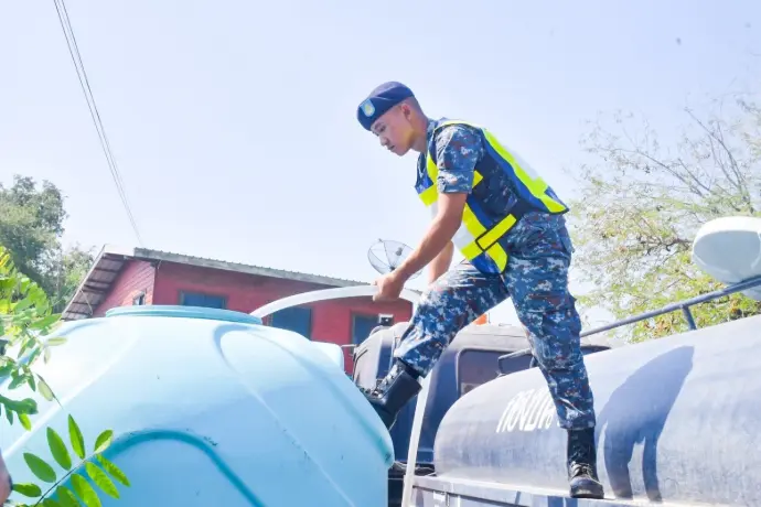 มอบหมายให้เจ้าหน้าที่ศูนย์บรรเทาสาธารณภัย กองบิน 2 นำรถบรรทุกน้ำขนาดใหญ่ จำนวน 6,000 ลิตร