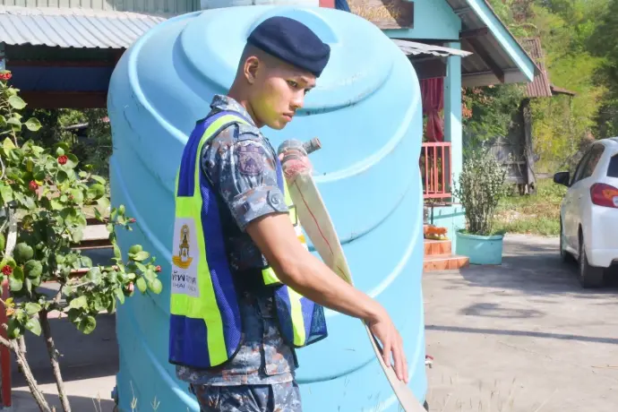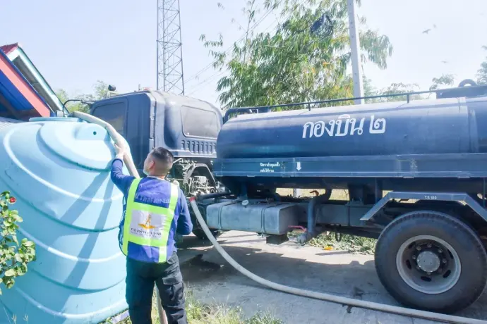 ออกให้การแจกจ่ายน้ำสะอาดสำหรับอุปโภคให้กับประชาชนในพื้นที่หมู่ 11 ตำบลหลุมข้าว อำเภอโคกสำโรง จังหวัดลพบุรี