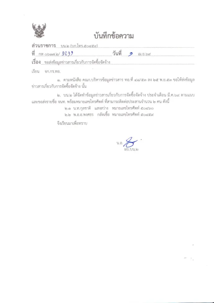 ขอส่งข้อมูลข่าวสารเกี่ยวกับการจัดซื้อจัดจ้าง มี.ค.69