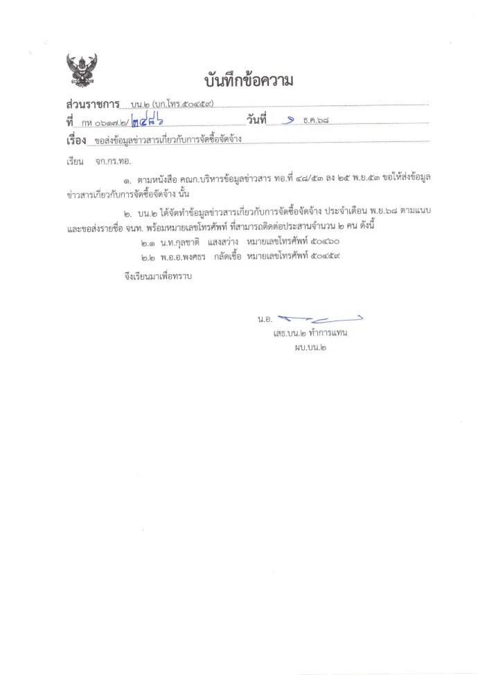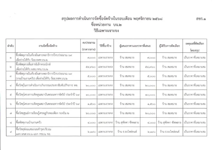 ขอส่งข้อมูลข่าวสารเกี่ยวกับการจัดซื้อจัดจ้าง พ.ย.68