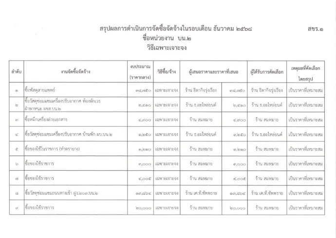 ขอส่งข้อมูลข่าวสารเกี่ยวกับการจัดซื้อจัดจ้าง ธ.ค.68