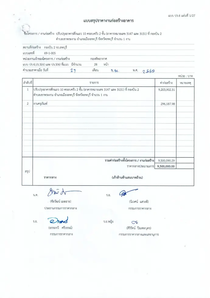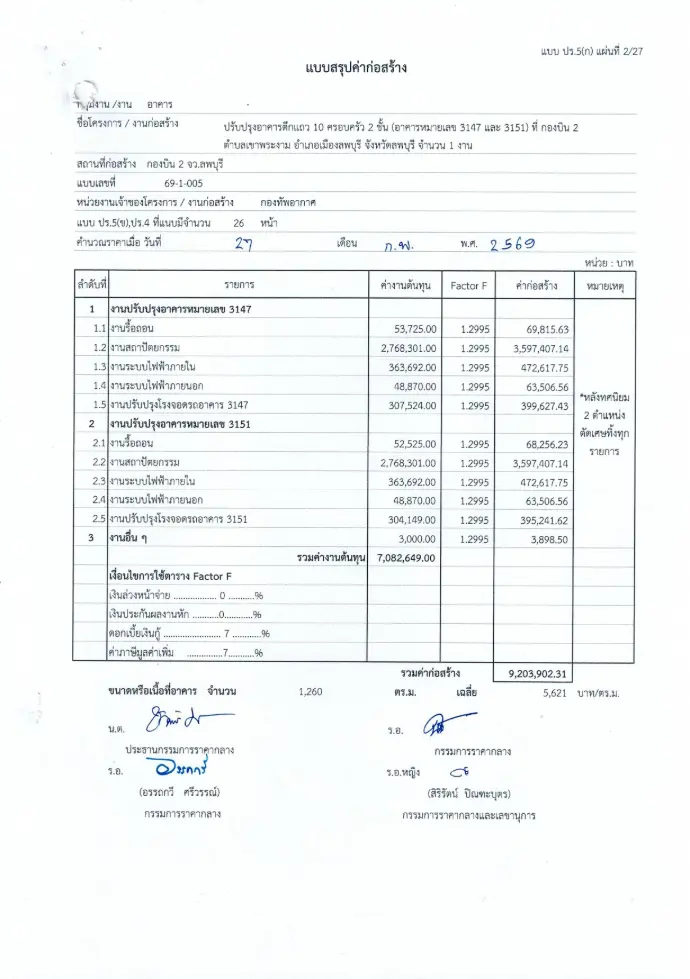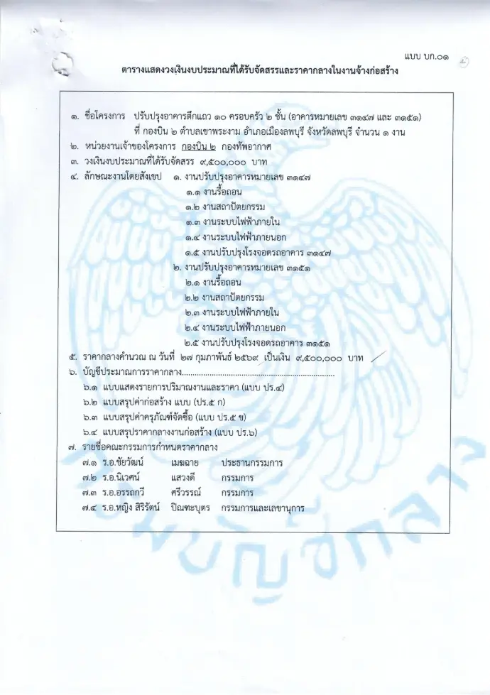 ประกาศราคากลาง งานจ้างปรับปรุงอาคารตึกแถว 10 ครอบครัว 2 ชั้น (อาคารหมายเลข 3147 และ 3151) ที่ กองบิน 2 ตำบลเขาพระงาม อำเภอเมืองลพบุรี จังหวัดลพบุรี จำนวน 1 งาน ด้วยวิธีประกวดราคาอิเล็กทรอนิกส์ (e-bidding) ประกาศ ณ วันที่ 24 มีนาคม 2569