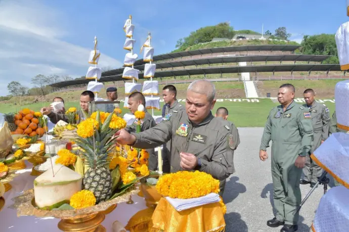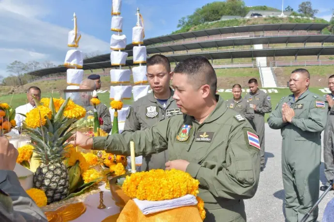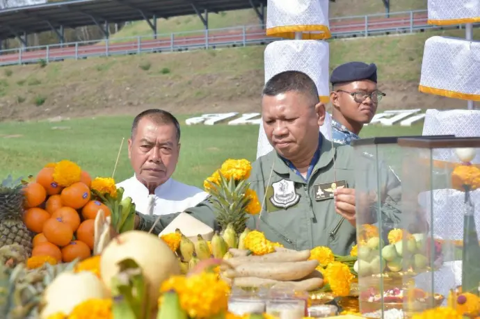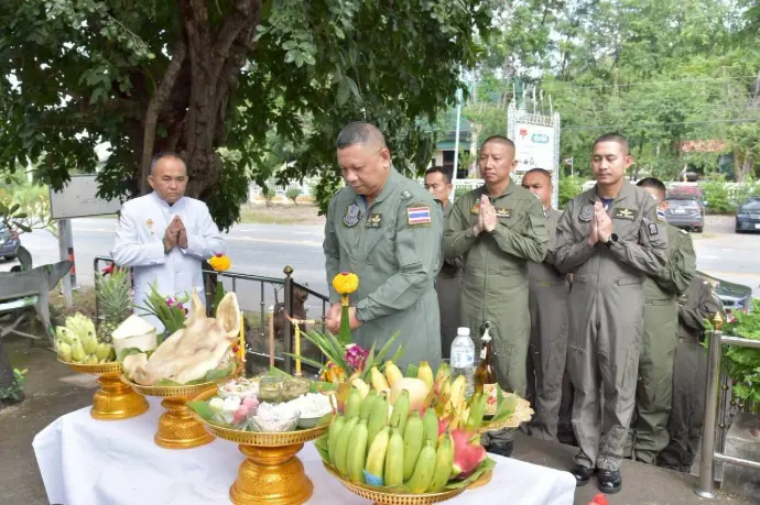 และพิธีบวงสรวงสิ่งศักดิ์สิทธิ์ เพื่อเป็นขวัญกำลังใจแก่กำลังพลผู้ปฏิบัติงานและขอพรให้ภารกิจของกองทัพอากาศลุล่วงสำเร็จได้ด้วยความปลอดภัย