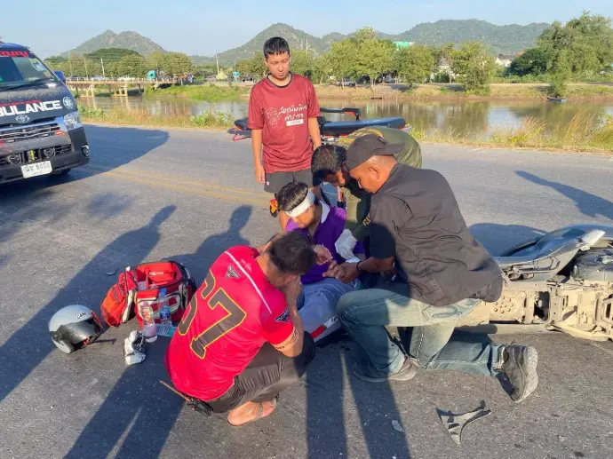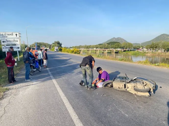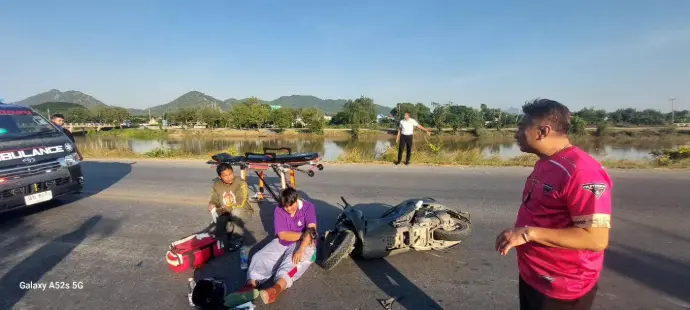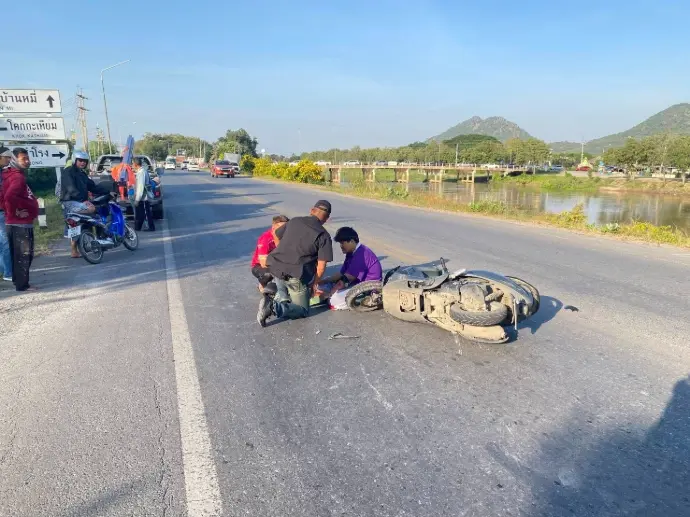 พบเห็นอุบัติเหตุจักรยานยนต์ชนกับรถกะบะบรรทุกอุปกรณ์ก่อสร้าง บริเวณ สี่แยกชลประทานที่ 10 จังหวัดลพบุรี