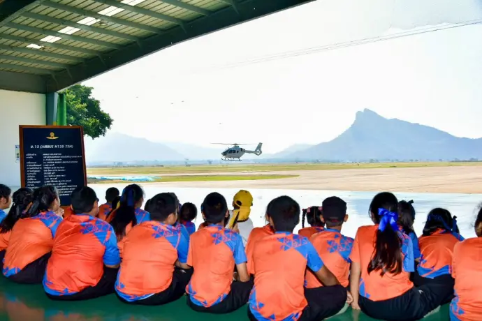เดินทางมาทัศนศึกษาดูงาน ณ ฝูงบิน 202 กองบิน 2กิจกรรมประกอบด้วย การชมการจัดแสดงเฮลิคอปเตอร์แบบที่ 13 (H135)
