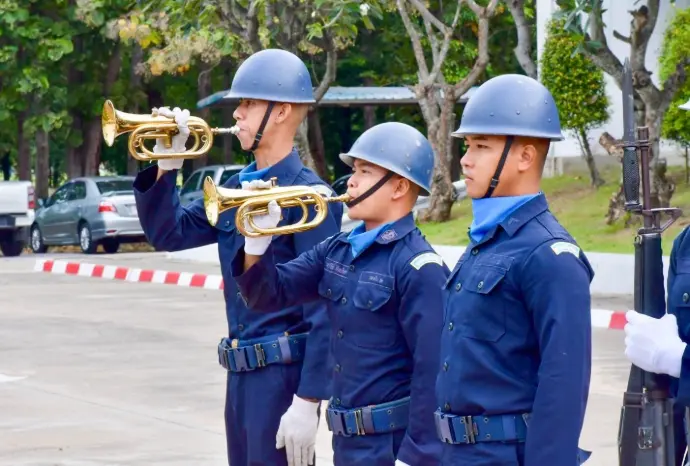 กองบิน 2 กองทัพอากาศ ประกอบพิธียืนสงบนิ่งถวายความอาลัยแด่สมเด็จพระนางเจ้าสิริกิติ์ พระบรมราชินีนาถ พระบรมราชชนนีพันปีหลวง