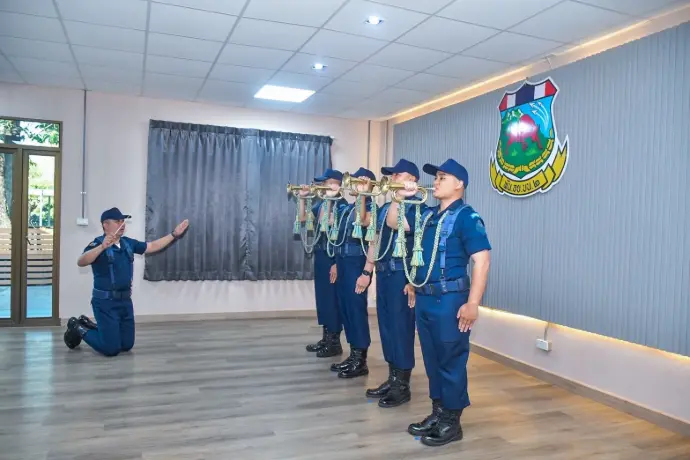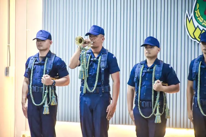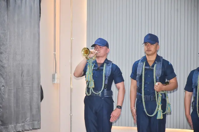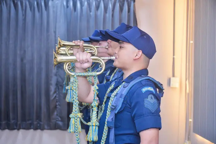 กองบิน 2 กองทัพอากาศ รับการตรวจสอบความพร้อมของพลแตรในส่วนของกองทัพอากาศ สำหรับบรรเลงเพลงคำนับในการถวายความเคารพ