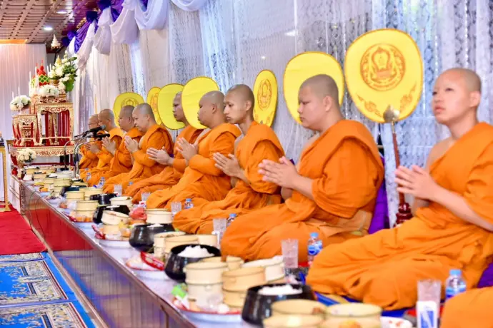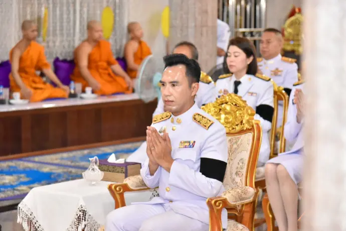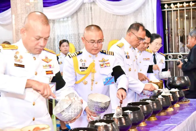 ประกอบด้วยพิธีเจริญพระพุทธมนต์ ทำบุญตักบาตร ถวายพระราชกุศล