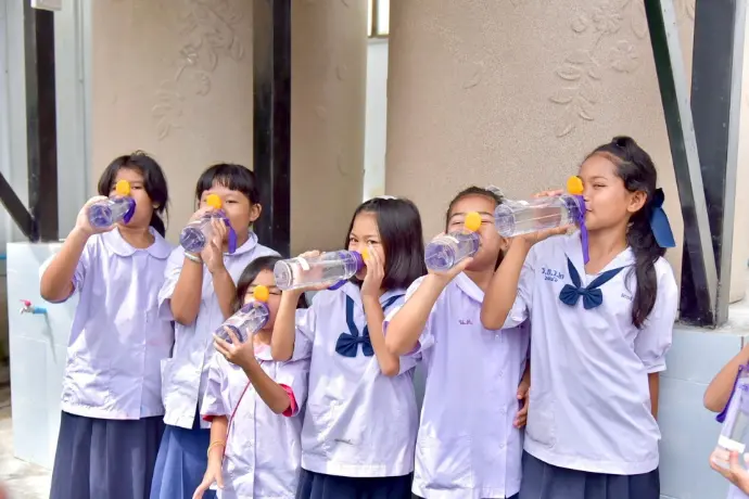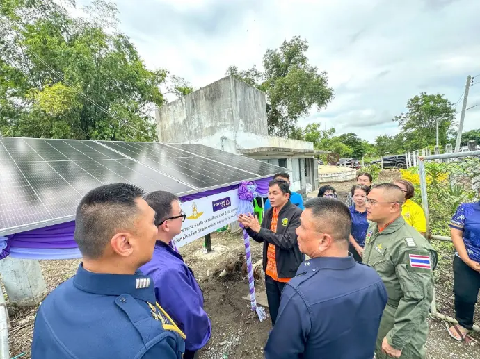 และติดตั้งระบบผลิตไฟฟ้าจากพลังงานแสงอาทิตย์สำหรับใช้ในการผลิตน้ำสะอาดและเพื่อลดภาระค่าใช้จ่ายกระแสไฟฟ้าให้กับโรงเรียนและชุมชน
