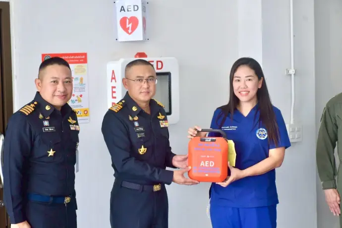 ผู้บังคับการกองบิน 2 มอบอุปกรณ์การแพทย์ เครื่องกระตุกหัวใจด้วยไฟฟ้าแบบอัตโนมัติ (AED)