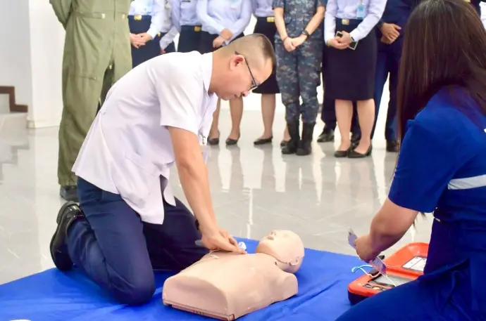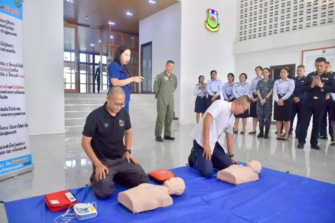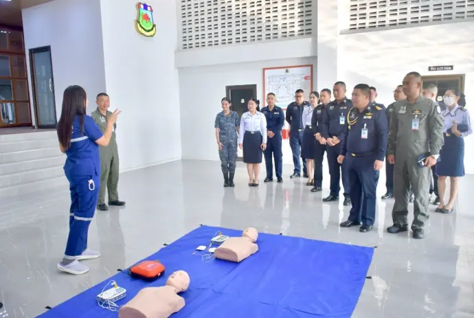เป็นวิทยากรบรรยาย สาธิตการใช้เครื่องกระตุกหัวใจด้วยไฟฟ้าแบบอัตโนมัติ (AED) ให้แก่ข้าราชการ ลูกจ้าง พนักงานราชการ กองบิน 2