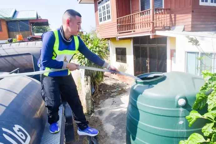 มอบหมายให้เจ้าหน้าที่ศูนย์บรรเทาสาธารณภัย กองบิน 2 นำรถบรรทุกน้ำขนาดใหญ่ จำนวน 6,000 ลิตร
