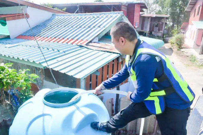 ออกให้การแจกจ่ายน้ำสะอาดสำหรับอุปโภคให้กับประชาชนในพื้นที่หมู่ 11 ตำบลหลุมข้าว อำเภอโคกสำโรง จังหวัดลพบุรี