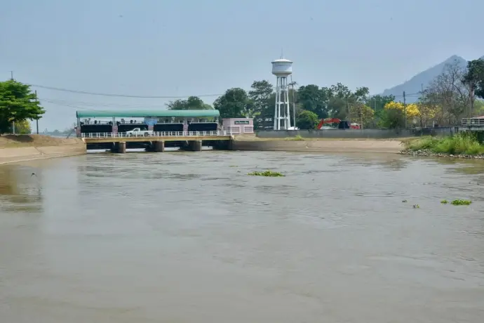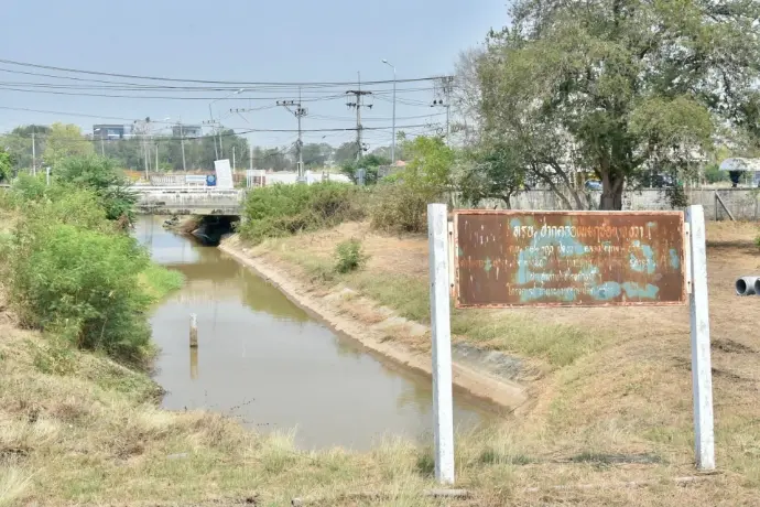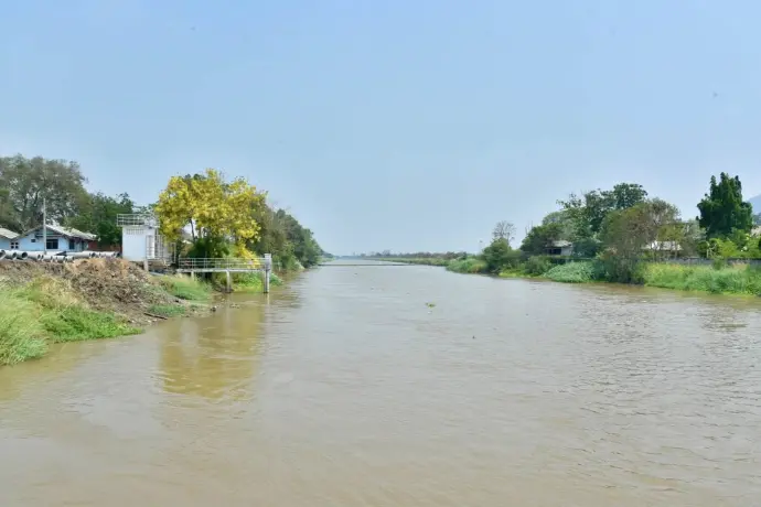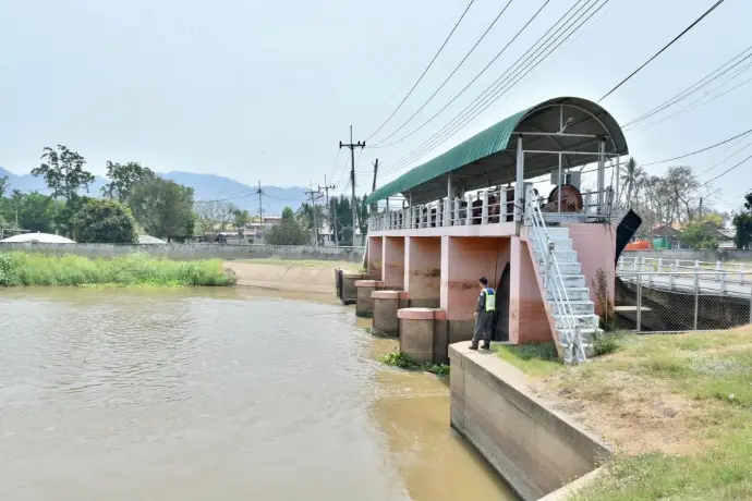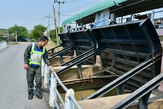 กับสถานการณ์ภัยแล้งที่อาจส่งผลกระทบต่อประชาชนในพื้นที่ ณ บริเวณประตูระบายน้ำ สำนักงานชลประทานที่ 10