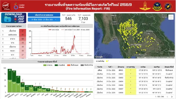 รายงานพื้นที่จุดความร้อนที่มีโอกาสเกิดไฟไหม้